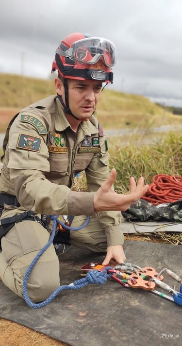 Fábio Machado é Ex-Bombeiro Militar, Bombeiro Profissional Civil, Especialista em Busca e Salvamento, Técnico em Enfermagem e Técnico em Segurança do Trabalho.